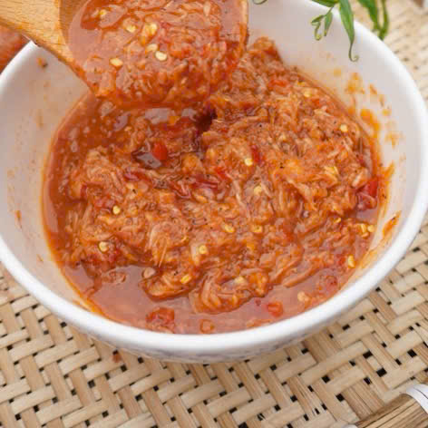 Nguyên liệu: Mắm Tép gia vị sẵn: có hương vị đậm đà, màu đỏ hồng đẹp mắt và thường được sử dụng làm nước chấm hoặc để ăn ngay với cơm nóng…